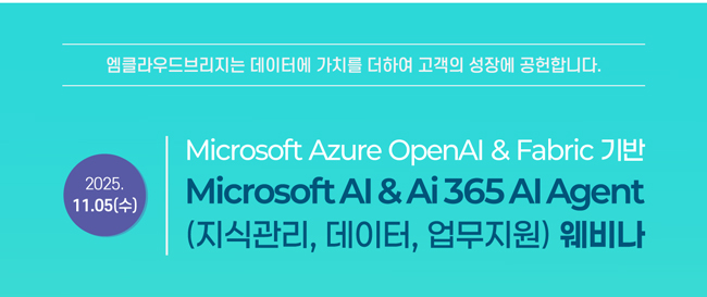 Ai 365 Agent Platform은 멀티AI (Multi AI) 및 산업군 AI 기반의 지식관리 에이전트, 데이터 에이전트, 업무지원 에이전트 기능과 Microsoft 365 계정별 맞춤 업무환경을 제공하는 M365홈(전자결재)과 Microsoft 365 및 Azure 보안 보고서를 통합 제공하는 에이전트 플랫폼입니다. 본 웨비나에서는 MS 및 구글 GPT 서비스, RAG 및 문서학습 기반 AI 지식검색, AI 프롬프트 서비스, AI 업무 도우미 기능을 제공하는 지식관리 에이전트, MS Fabric 기반 생성형 경영보고서 BI, 차트분석 AI, 데이터 분석 Agent를 데이터 기반 실시간 질의 응답 기능으로 제공하는 데이터 에이전트, Copilot & Power Automate 연동 업무자동화 Agent, Azure ML 연동 머신러닝 Agent, Google Vision API 연동 비전 Agent 서비스를 제공하는 업무지원 에이전트의 활용과 구체적인 도입 방안을 확인하실 수 있습니다.