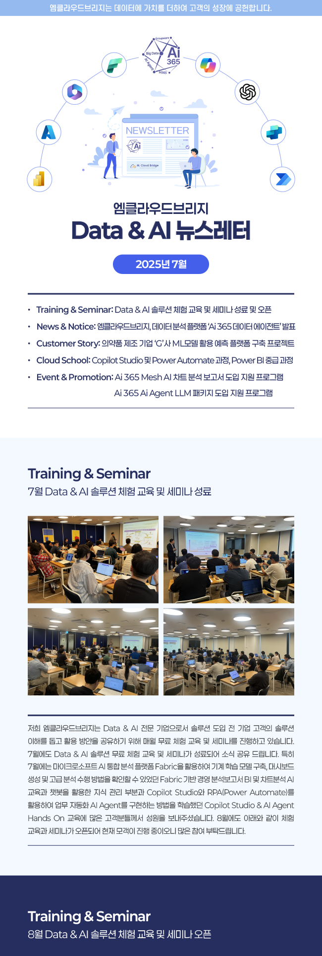 • Training & Seminar : 7월 Data & AI 솔루션 체험 교육 및 세미나 성료 & 8월 체험 교육 초청 안내
