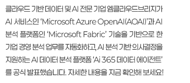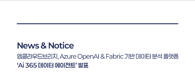 • News & Notice : 엠클라우드브리지, Azure OpenAI & Fabric 기반 데이터 분석 플랫폼 ‘Ai 365 데이터 에이전트’ 발표