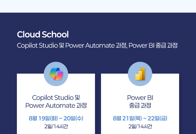 1. Copilot Studio 및 Power Automate 과정 - 일정 : 8월 19일(화) ~ 20일(수) | 기간 : 2일/14시간