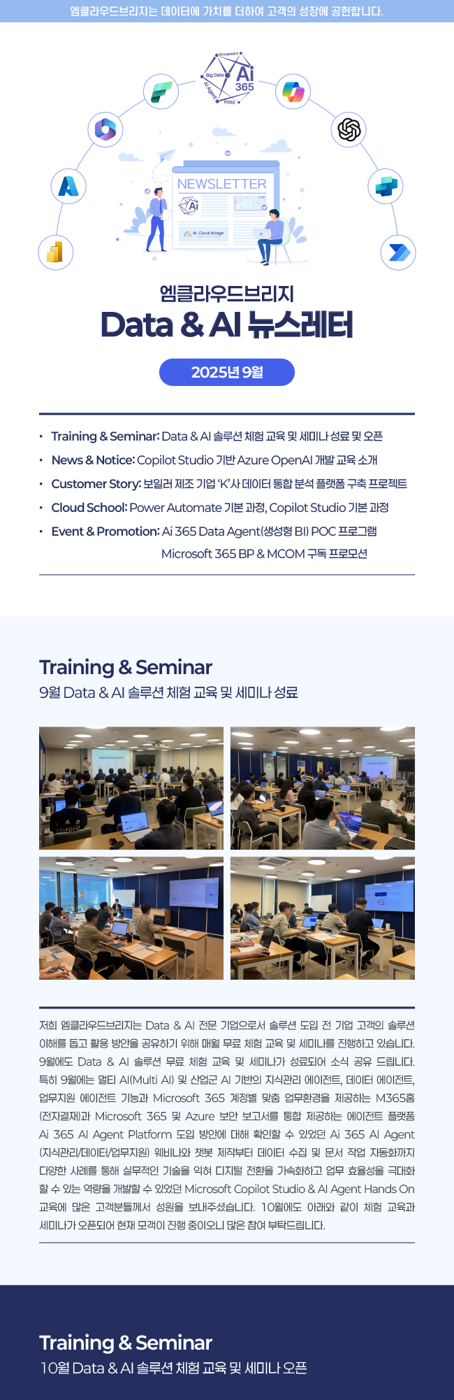 • Training & Seminar : 9월 Data & AI 솔루션 체험 교육 및 세미나 성료 & 10월 체험 교육 초청 안내