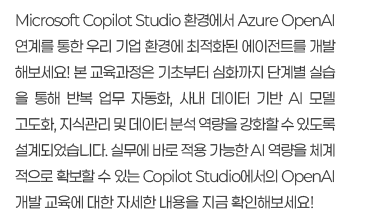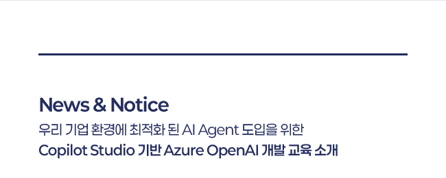 • News & Notice : 우리 기업 환경에 최적화 된 AI Agent 도입을 위한 Copilot Studio 기반 Azure OpenAI 개발 교육 소개