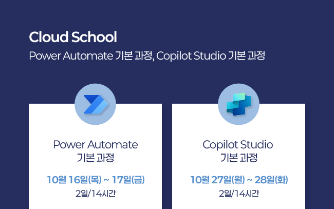 2. Copilot Studio 기본 과정 - 일정 : 10월 27일(월) ~ 28일(화) | 기간 : 2일/14시간