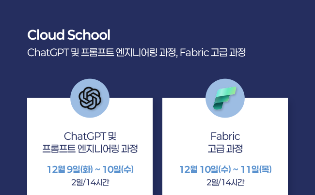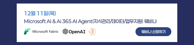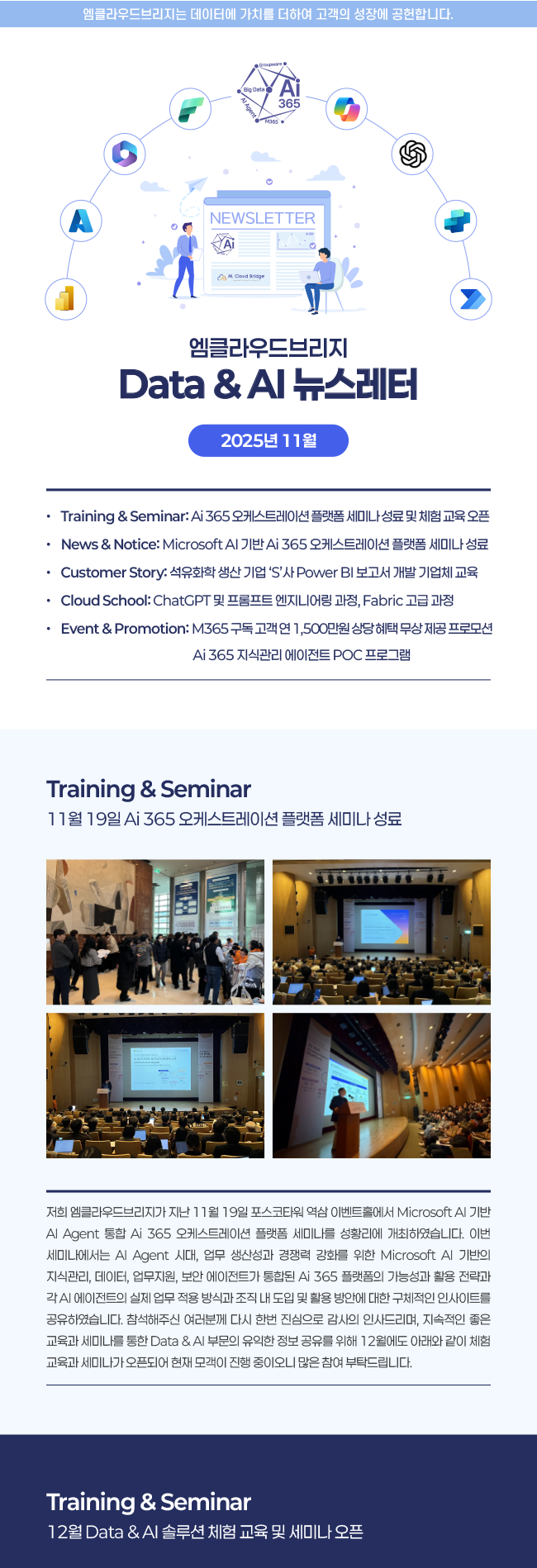 • Training & Seminar : 11/19(수) Microsoft AI 기반 AI 오케스트레이션 세미나 성료 및 12월 Data&AI 솔루션 체험 교육 오픈