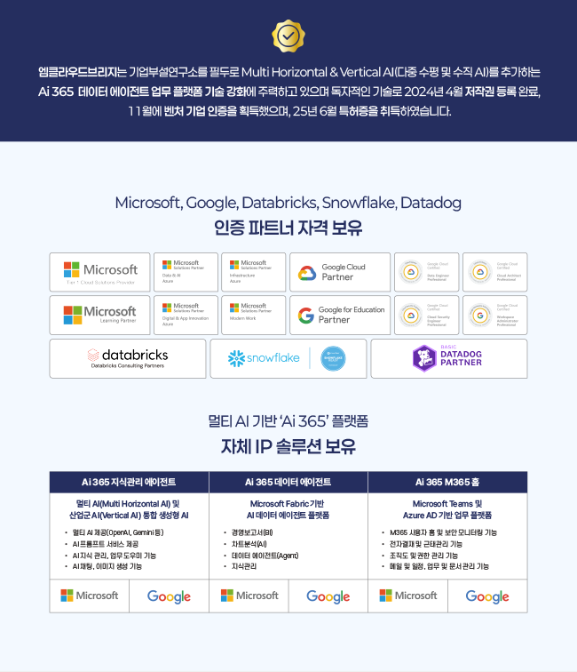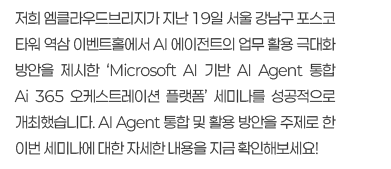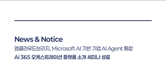 • News & Notice : 엠클라우드브리지, Microsoft AI 기반 기업 AI Agent 통합 Ai 365 오케스트레이션 플랫폼 소개 세미나 성료