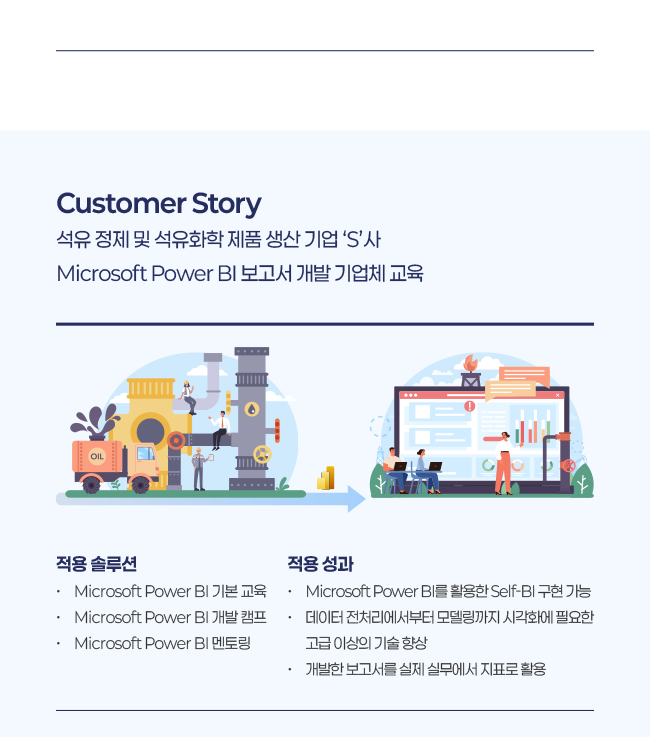 • Customer Story : 석유 정제 및 석유화학 제품 생산 기업 'S'사 Microsoft Power BI 보고서 개발 기업체 교육