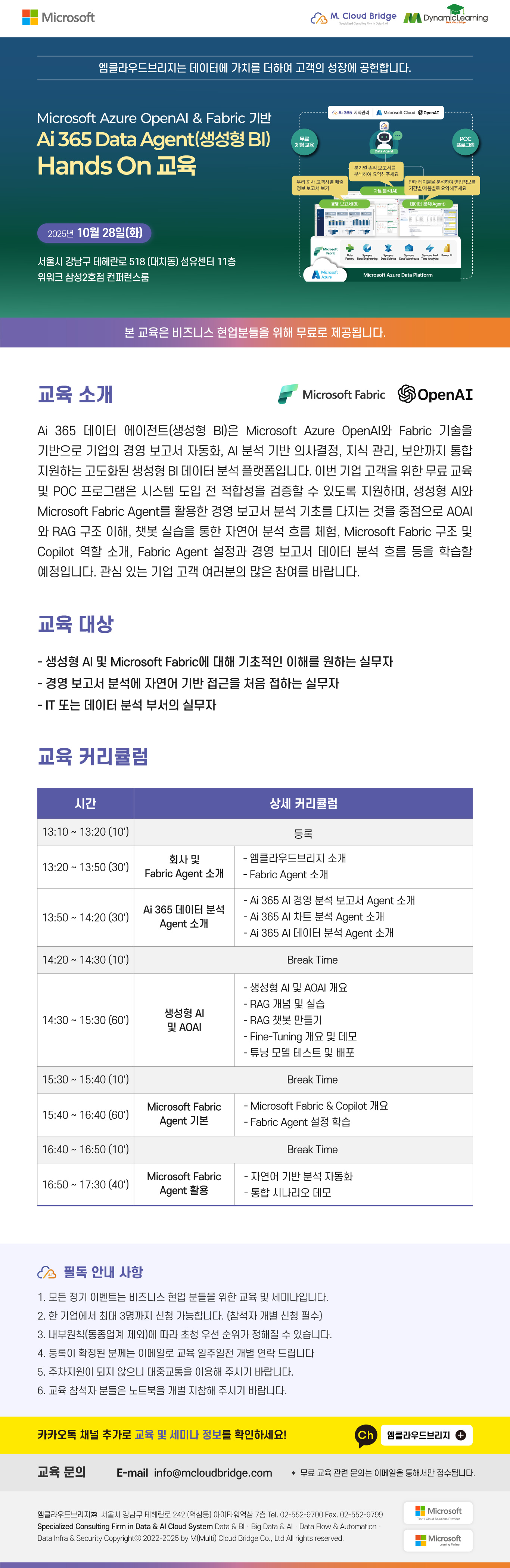 교육명 Microsoft Azure OpenAI & Fabric 기반 Ai 365 Data Agent(생성형 BI) Hands On 교육