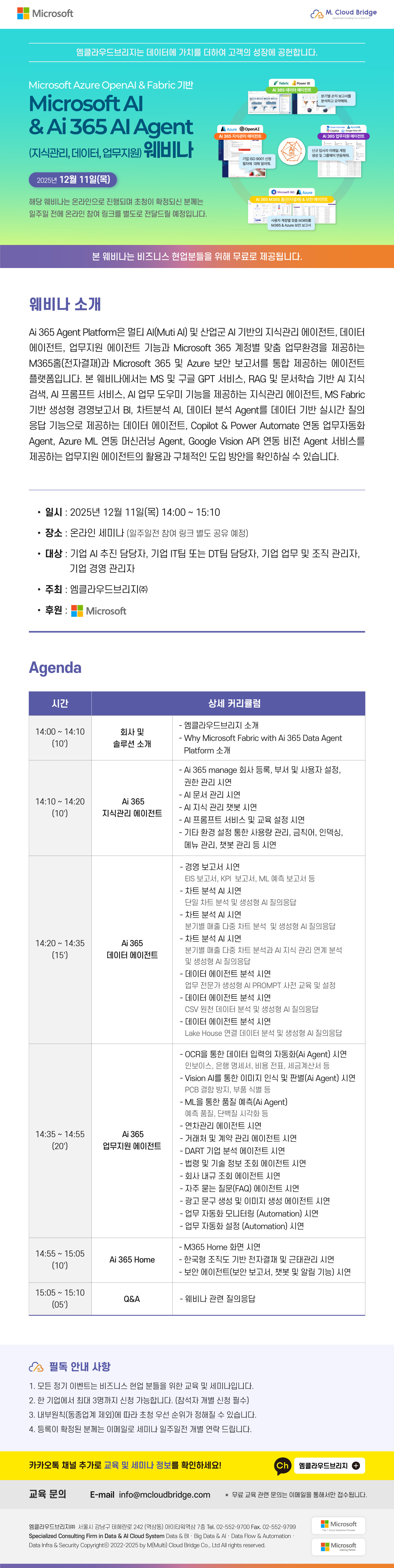 교육명 [온라인 세미나] Microsoft AI & Ai 365 AI Agent(지식관리/데이터/업무지원) 웨비나