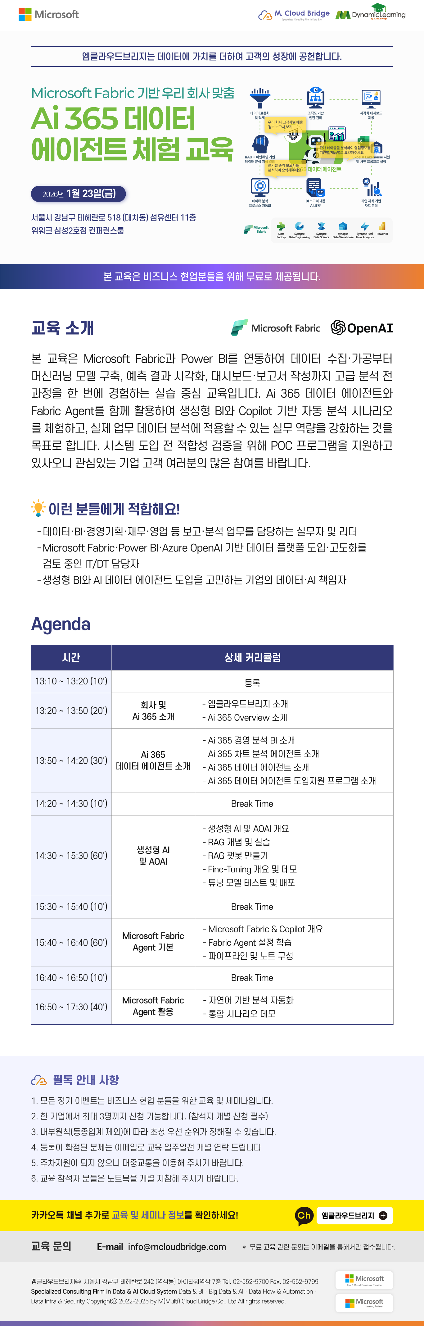 교육명 Microsoft Fabric 기반 우리 회사 맞춤 Ai 365 데이터 에이전트 체험 교육
