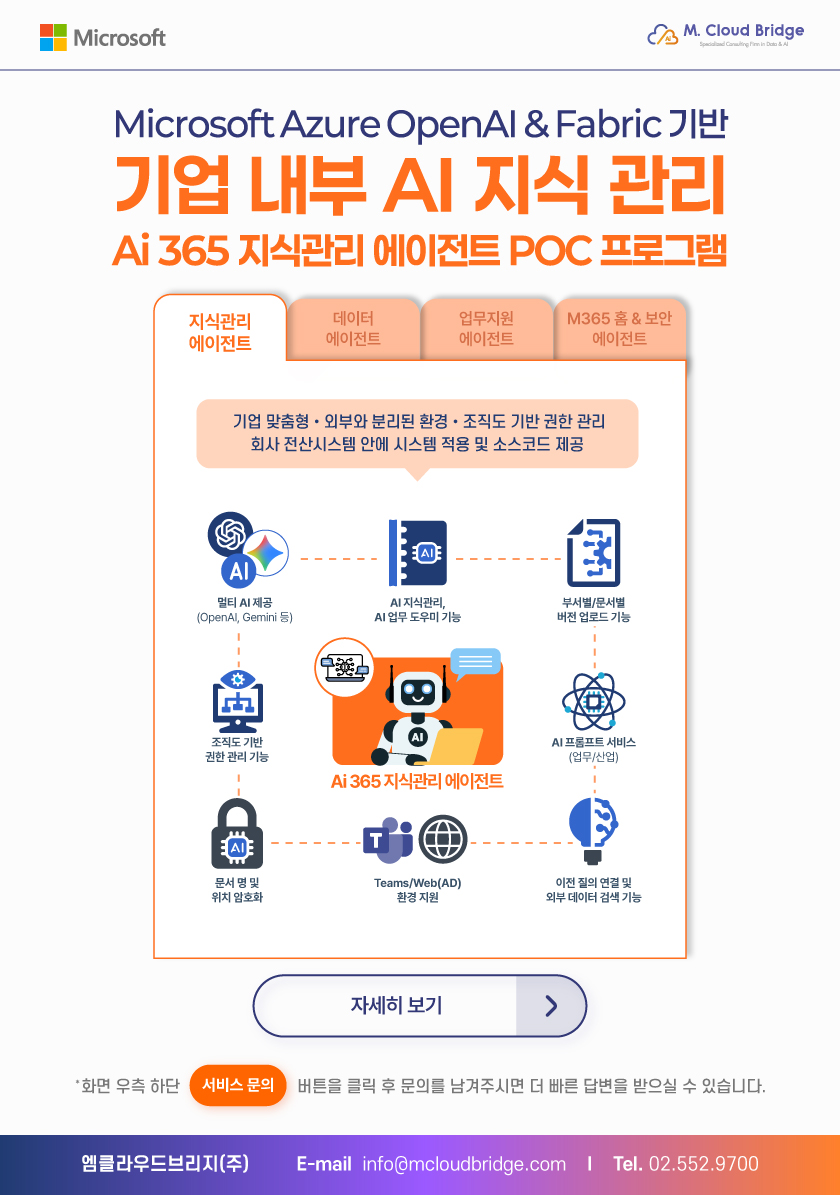 지금 엠클라우드브리지의 Ai 365 AI Agent를 만나보세요!