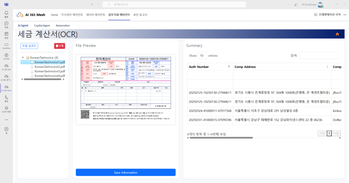 지금 엠클라우드브리지의 Ai 365 업무지원 에이전트를 만나보세요!