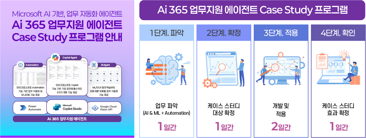 Microsoft AI 기반 업무자동화 에이전트 Ai 365 업무지원 에이전트 Case Study 프로그램 안내